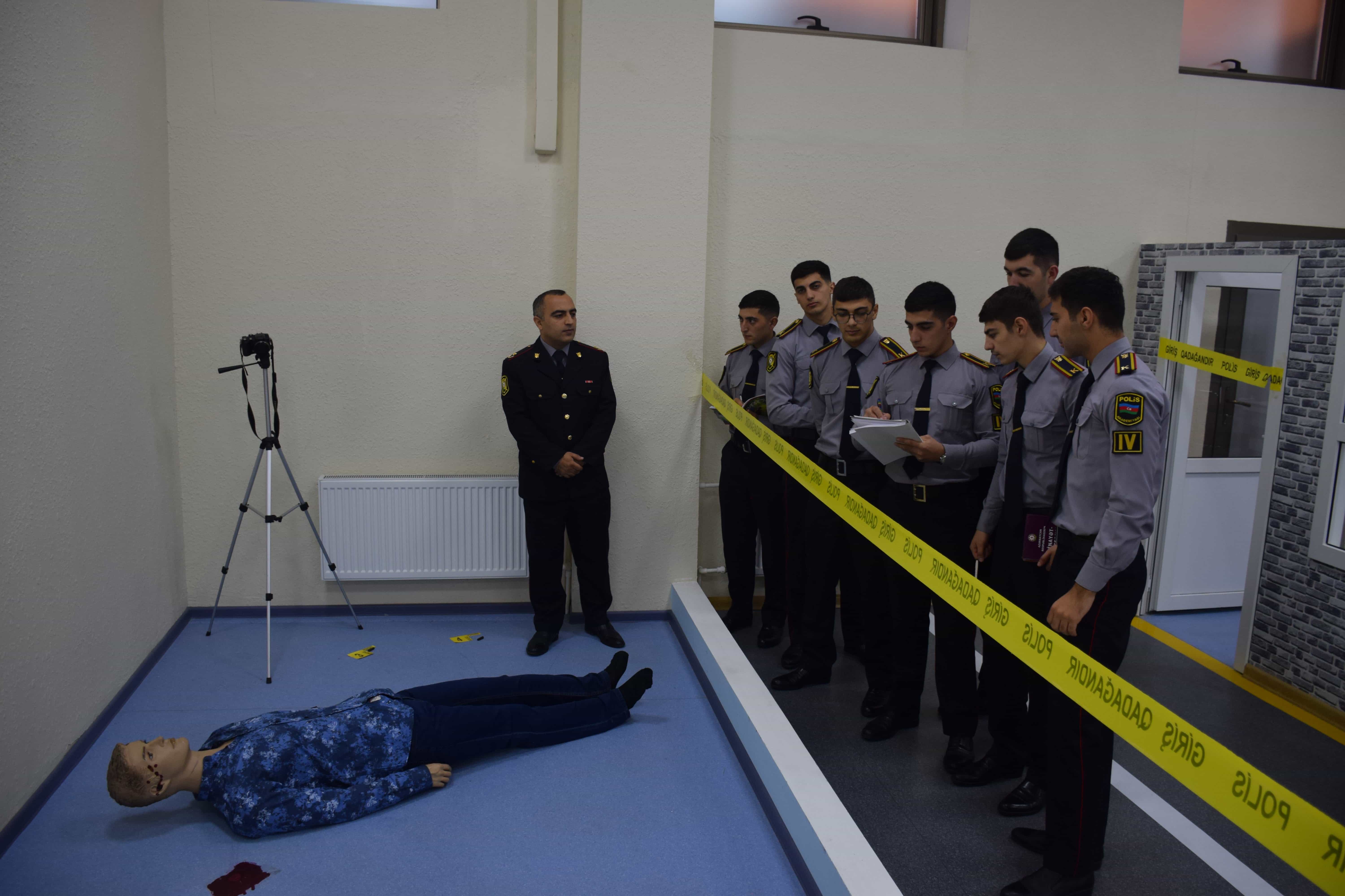 Növbəti təcrübə dərsi “Cinayət prosesi” kafedrasının rəisi, polis polkovniki Səyyad Ağayev və kafedranın müəllimi, polis mayoru Ramil Mehdiyev tərəfindən əyani təhsil üzrə IV kurs kusantlarına hadisə yerinə baxışın keçirilməsi məqsədilə “İstintaq hərəkətləri” mövzusunda keçirilib.